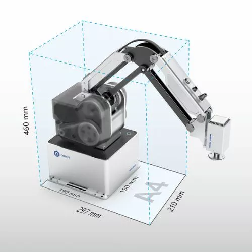 Acest robot colaborativ DoBot MG400 oferă o soluție compactă, versatilă și ușor de utilizat pentru automatizarea sarcinilor în producții mici și medii.