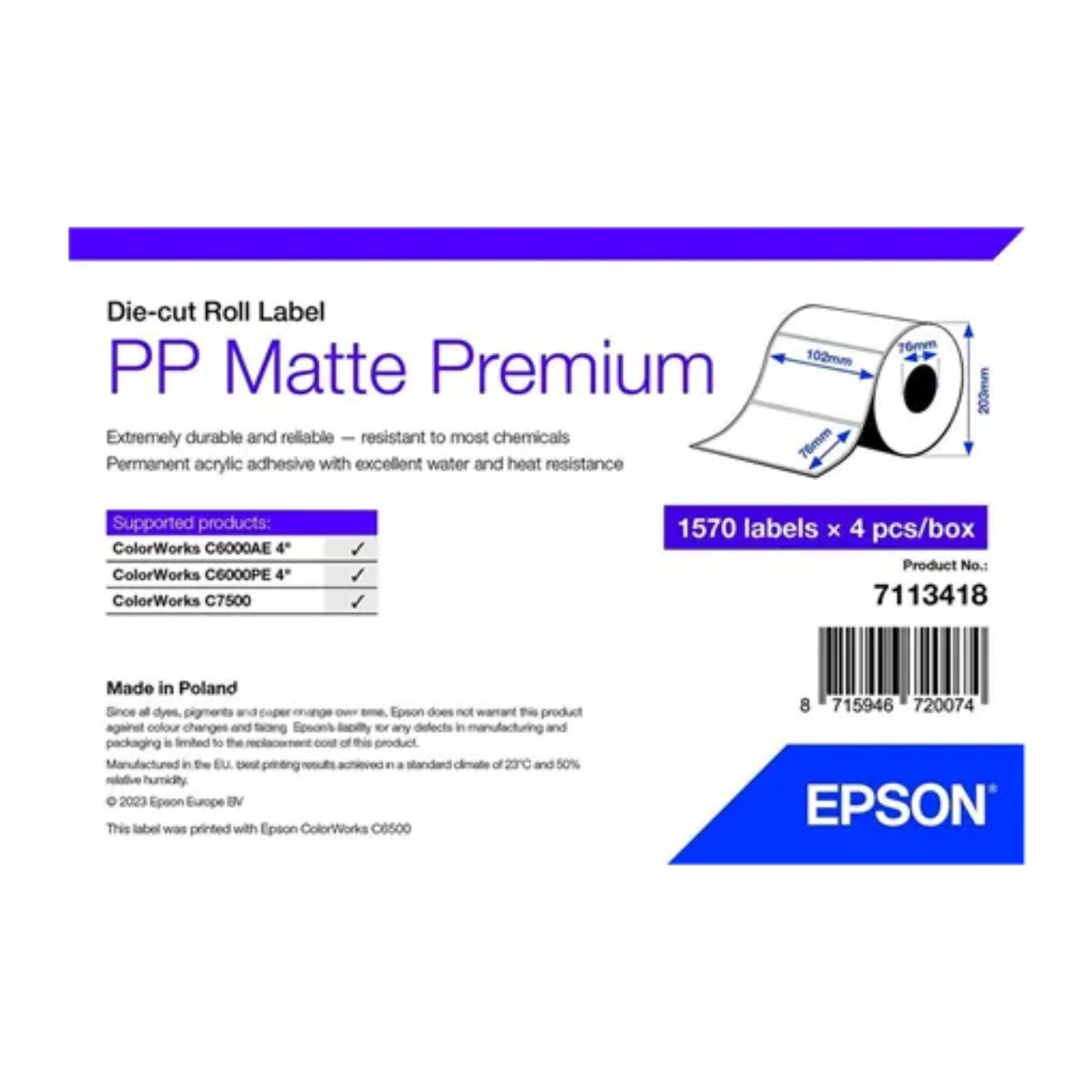 Etichete sintetice PP Matte Premium 102×76 mm Epson 7113418