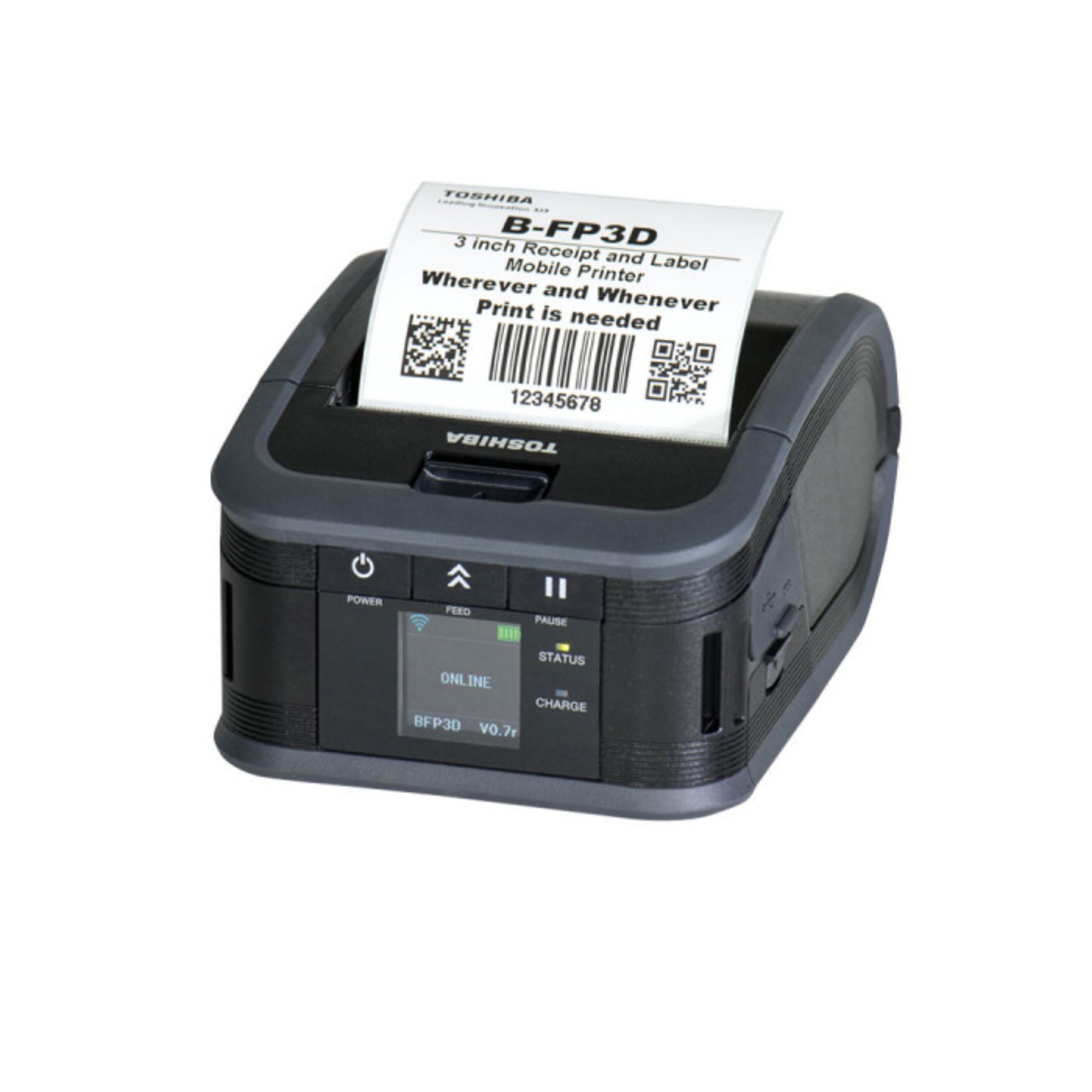 Seria Toshiba B-FP3D folosește tehnologie Direct Thermal și un printhead Flat Head, imprimând la 203 dpi cu o viteză de până la 152,4 mm/s (6 ips). Lățimea maximă de imprimare este de 72 mm, iar lungimea maximă ajunge până la 999 mm, în funcție de aplicație. Imprimanta este echipată cu ecran LCD color 128 x 128 pixeli, 2 indicatoare LED și butoane dedicate pentru operare simplă, ceea ce ajută utilizatorul să lucreze rapid chiar și în medii solicitante.