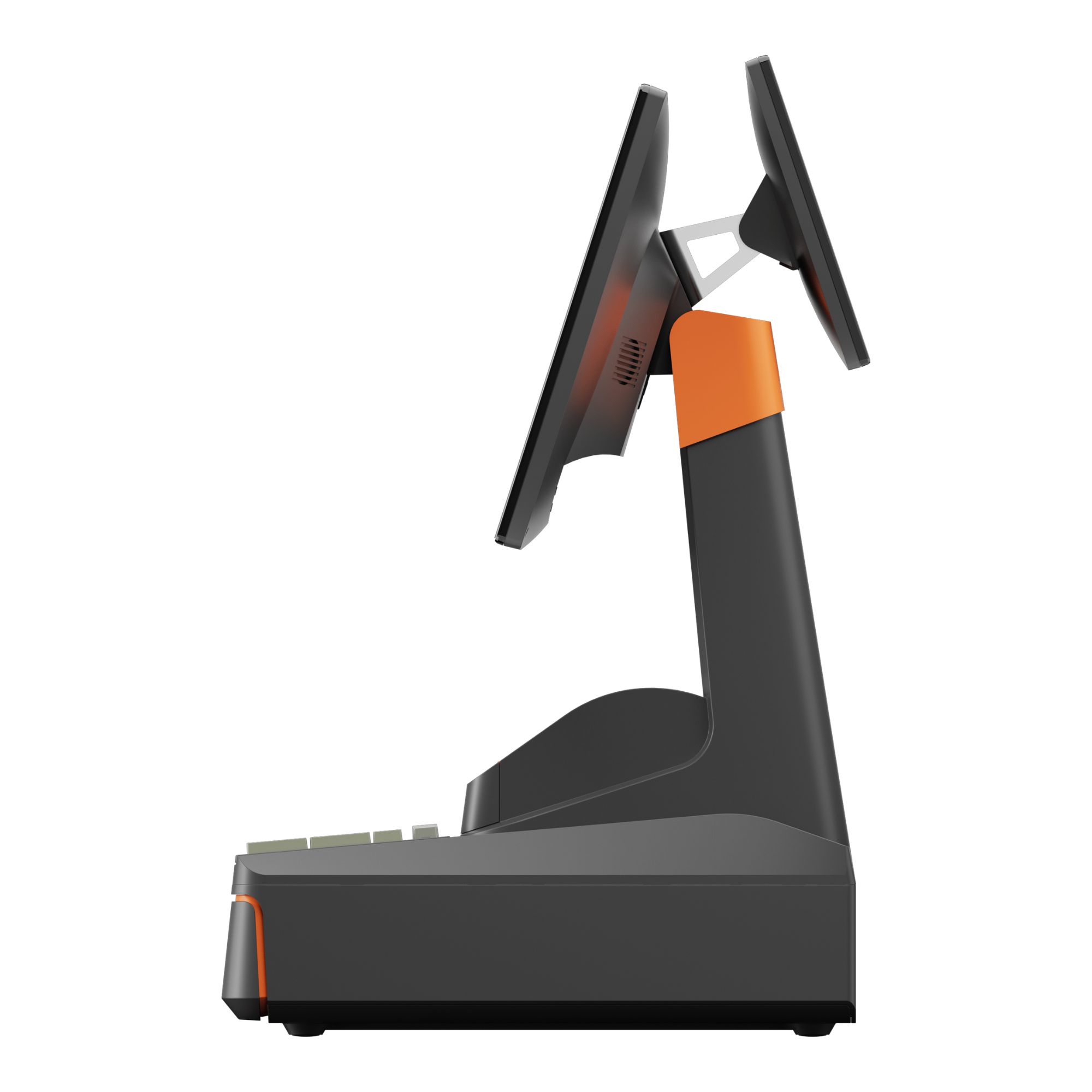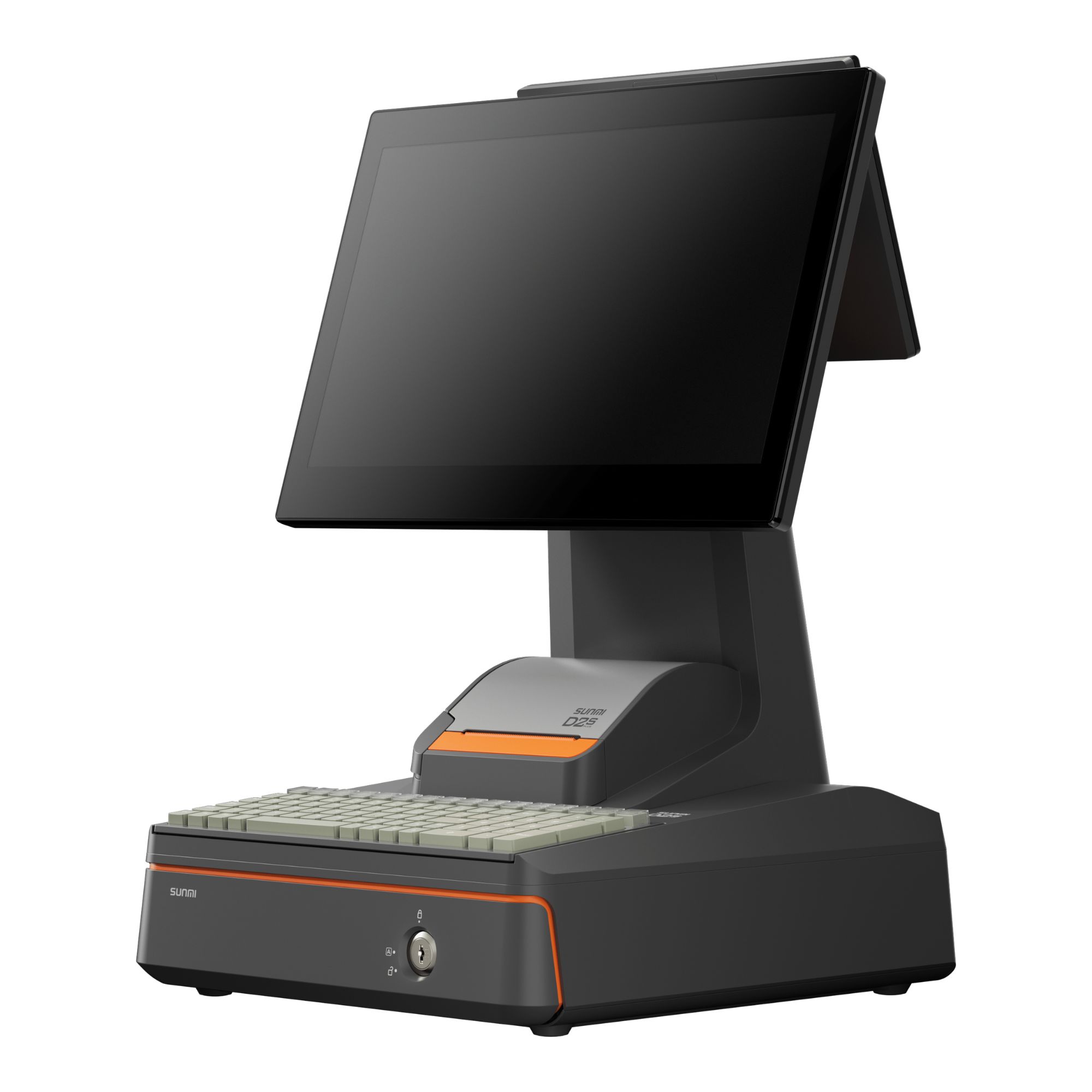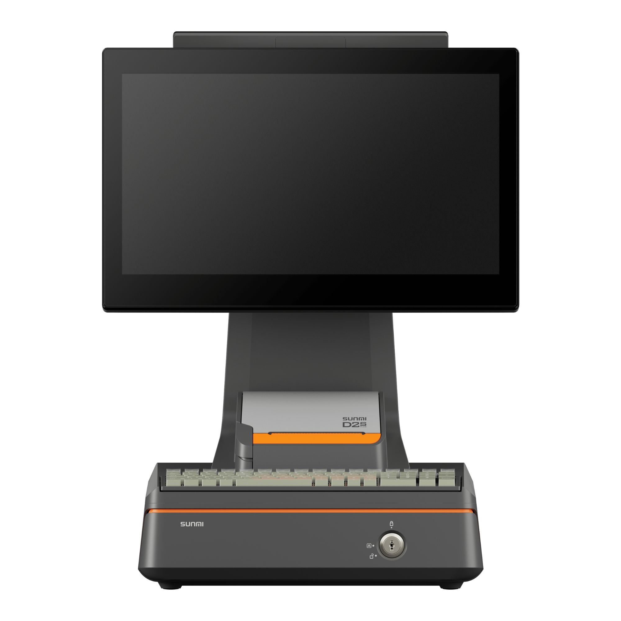 Echipamentul este livrat standard cu un ecran principal tactil capacitiv de 15,6 inch, cu rezolutie Full HD 1920 x 1080 si tehnologie multi-touch. In functie de configuratie, terminalul poate fi extins cu un al doilea display pentru client, fie de 10,1 inch HD, fie de 15,6 inch Full HD. Toate variantele de ecran sunt gandite pentru operare intuitiva si pentru o interactiune mai buna intre operator si client, mai ales in zonele de vanzare cu trafic ridicat.